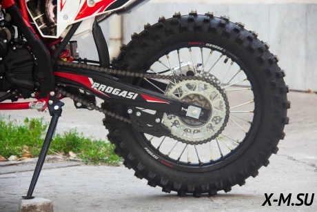 Покрышки Kenda давно зарекомендовали себя в экстремальных видах спорта. Резина Kenda выдерживает закручивание шипов для катания зимой и отлично показывает себя на дёрте. Усиленные алюминиевые обода Progasi оборудованы буксаторами, которые притягивают покрышку к ободу, не давая ей проворачиваться во время езды.